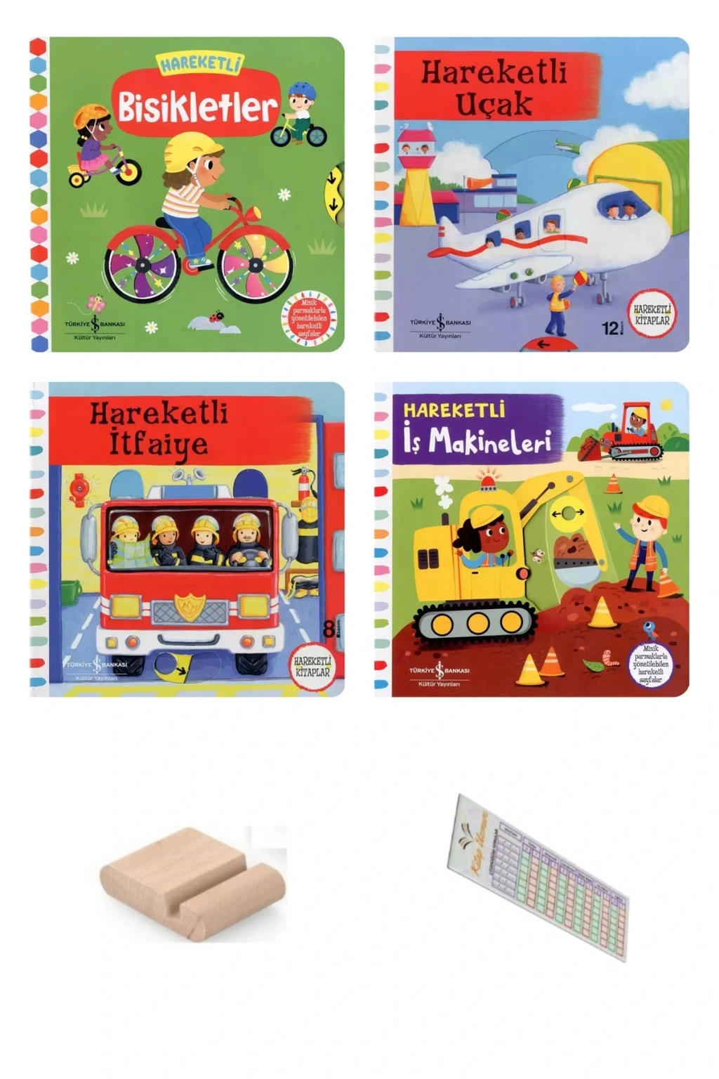 0-2 Yaş Hareketli Kitaplar Serisi - Hareketli Araçlar / 4 Kitap /+ Tablet Standı