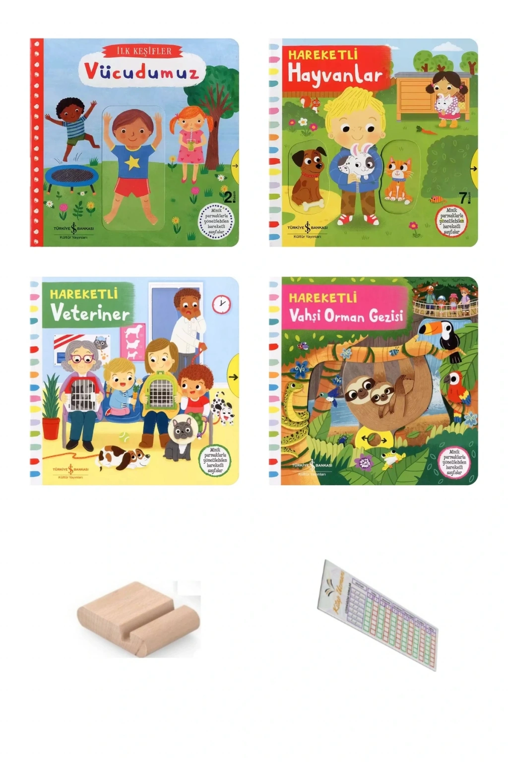Hareketli Kitaplar çocukların boyut algılarını, el göz koordinasyonlarını ve çevreyle bağlantı kurma yeteneklerini geliştirmek amacıyla hazırlanmıştır.; Çocuğunuzun elinden düşürmeyeceği Hareketli Kitaplar hem çok eğlenceli, hem de çok dayanıklı.
