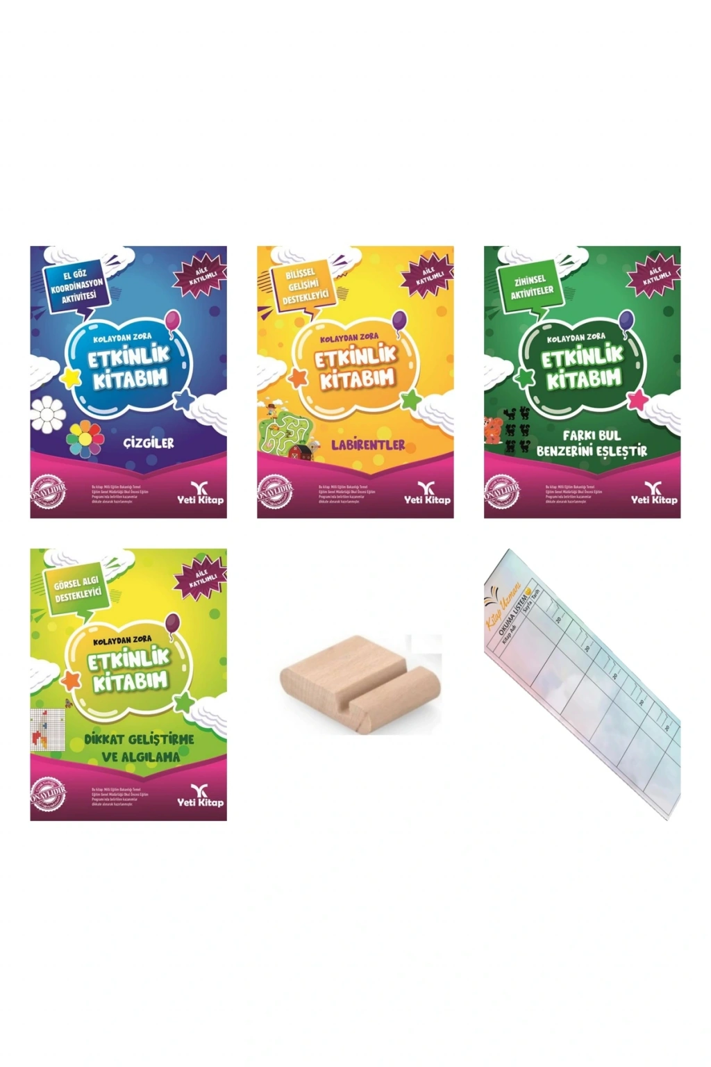 3-5 Yaş kolaydan Zora Aktivite Kitabı 4lü - Dikkat - Farkı Bul - Labirent - Çizgiler+Tablet Standı