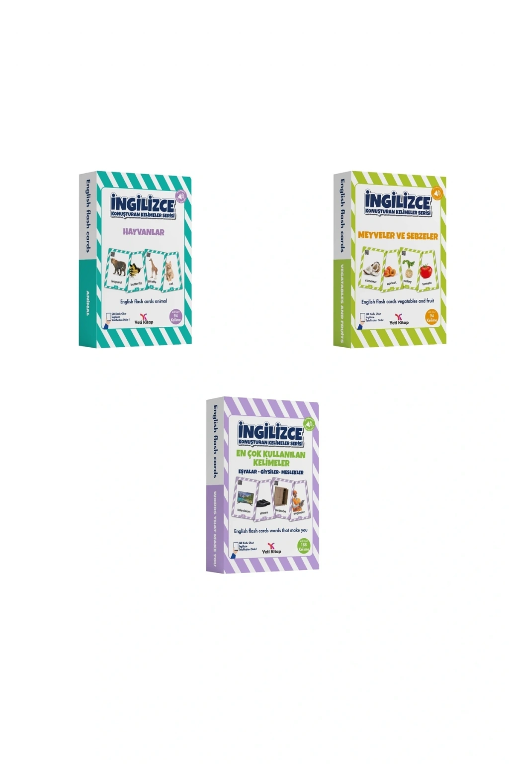 - 4-9 yaş arası çocukların İngilizce öğrenimine yönelik özel olarak tasarlanmış, 376 kelime içeren kapsamlı bir set; - Setli ürün seçeneği ile hem okul öncesi hem de ilkokul çağındaki çocukların ihtiyaçlarına uygun olarak hazırlanmıştır; - İngilizce basım dili sayesinde çocukların anadillerinde öğrenme sürecini destekler ve dil becerilerini geliştirir;