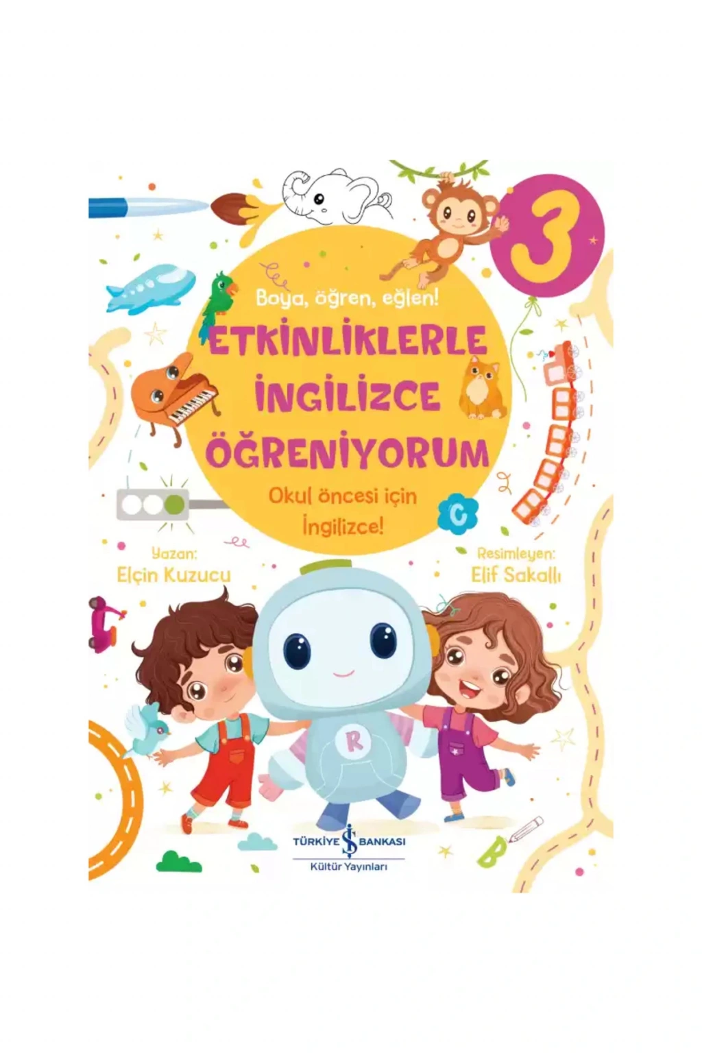 Eşleştir, boya, eğlen, İngilizceyi öğren. ; Robix, Yağmur ve Mert çocukları eğlenceli İngilizce etkinliklere katılmayı davet ediyor! İngilizce öğrenmeye yeni başlayan okul öncesi dönemdeki çocuklar için özel olarak hazırlanan bu kitap, dil gelişimini destekleyen birbirinden eğlenceli etkinlikler sunuyor. ; Kitapta yer alan labirent, eşleştirme, boyama, bulmaca gibi etkinliklerle çocuklar eğlenerek vakit geçirirken aynı zamanda dil becerilerini geliştirecek ve İngilizce sözcüklerle cümleleri kalıcı şekilde öğrenecekler. ; İngilizce öğrenimini çocukların gelişim düzeylerine uygun şekilde desteklemek için uzman eğitimci tarafından hazırlanmıştır. ; Okul Öncesi İngilizce Öğretim Programı’na uygundur. ; Bu kitapta neler var? Family, Numbers, Colours, Shapes. ; Etkinliklerle İngilizce Öğreniyorum – 2 Eşleştir, boya, eğlen, İngilizceyi öğren. ; Robix, Yağmur ve Mert çocukları eğlenceli İngilizce etkinliklere katılmayı davet ediyor! İngilizce öğrenmeye yeni başlayan okul öncesi dönemdeki çocuklar için özel olarak hazırlanan bu kitap, dil gelişimini destekleyen birbirinden eğlenceli etkinlikler sunuyor. ; Kitapta yer alan labirent, eşleştirme, boyama, bulmaca gibi etkinliklerle çocuklar eğlenerek vakit geçirirken aynı zamanda dil becerilerini geliştirecek ve İngilizce sözcüklerle cümleleri kalıcı şekilde öğrenecekler. ; İngilizce öğrenimini çocukların gelişim düzeylerine uygun şekilde desteklemek için uzman eğitimci tarafından hazırlanmıştır. ; Okul Öncesi İngilizce Öğretim Programı’na uygundur. ; Bu kitapta neler var? Body Parts, Fruits-Vegetables, Clothes-Seasons. ; (4-5-6 Yaş) Arkadaşım Elif – İngilizce Öğreniyorum Çocuklar İngilizceyi eğlenerek öğrenecekler. ; İngilizcede basit kelimeler Görsellerle desteklenen kelimelerin kolay anlaşılması İlk sayılar, mevsimler, renkler İngilizce öğreten oyun kartları;