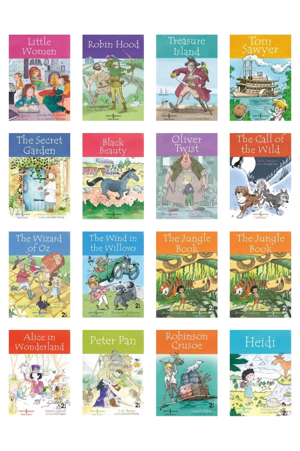 - 8-13 yaş aralığındaki çocuklar için ideal, İngilizce dilinde hazırlanmış klasik hikayelerden oluşan bir set; - Normal boyutu sayesinde çocukların rahatça tutabileceği ve okuyabileceği ideal boyuttadır; - Set içerisinde yer alan 16 farklı hikaye ile çocukların dil becerilerini geliştirmelerine yardımcı olur; - İngilizce basım dili ile çocukların yabancı dil öğrenimine katkı sağlar ve dil becerilerini geliştirir; - Setli ürün olarak sunulan bu kitaplar, çocukların okuma alışkanlıklarını destekler ve takip ayracı ile kolayca takip edilebilir;
