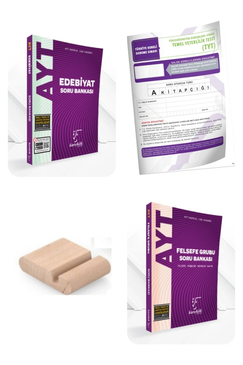 Karekök Yayınları TYT ve AYT Soru Bankaları – Yeni Nesil Sorularla Sınava Tam Hazırlık!Üniversite sınavına hazırlanan öğrencilerin en çok tercih ettiği markalardan biri olan Karekök Yayınları, TYT ve AYT hazırlık sürecinde başarıya giden yolda güvenilir bir rehber sunuyor.; Yeni nesil soru tarzlarını, ÖSYM formatına uygun özgün içeriklerle birleştiren Karekök TYT ve AYT kitapları, konu anlatımı, testler ve çözümlü sorularla eksiksiz bir hazırlık imkânı sağlar.; Karekök TYT Soru Bankaları, temel konuları sağlamlaştırmak isteyen öğrenciler için idealdir.; Matematik, Türkçe, Fizik, Kimya, Biyoloji, Tarih, Coğrafya ve Felsefe branşlarında yer alan testler, hem temel bilgileri pekiştirir hem de pratik kazandırır.; Karekök AYT Kitapları ise ileri seviye soru tipleriyle analitik düşünme, problem çözme ve zaman yönetimi becerilerini geliştirir.; Her kitapta yer alan video çözümler, öğrencilerin konuyu anlamasını kolaylaştırır.; Karekök Yayınları, yeni nesil mantık soruları, ayrıntılı çözümler, akıllı tahta uyumu ve güncel müfredata uygun içerikleriyle fark yaratır.; Sınav odaklı çalışma yapmak isteyen öğrenciler için Karekök deneme sınavları da mükemmel bir seviye ölçme aracıdır.; Karekök Yayınları TYT ve AYT kitaplarıyla hedeflediğin üniversiteye bir adım daha yaklaş! Türkiye’nin dört bir yanında binlerce öğrencinin tercih ettiği bu setlerle sen de başarıyı yakala.