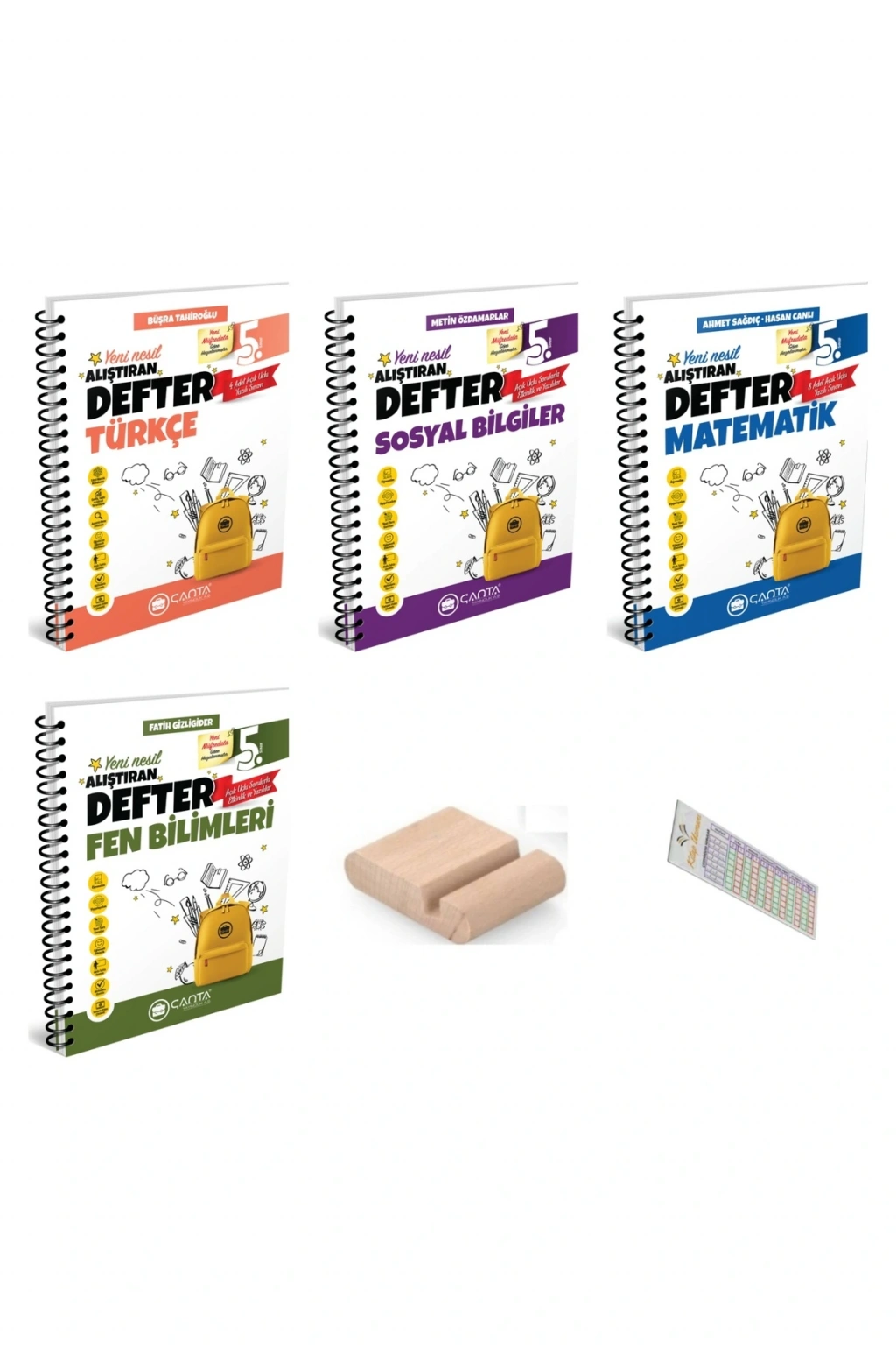 ÇANTA 5. Sınıf Matematik Türkçe Fen Sosyal Alıştıran Defter+Telefon Tutucu +Soru Çözüm Ayıracı