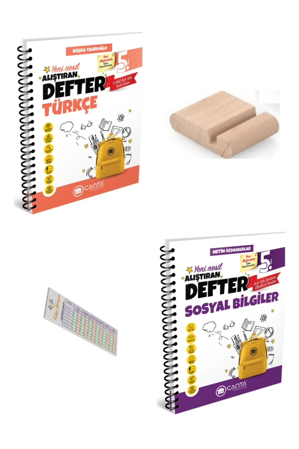 ÇANTA 5. Sınıf Sosyal Bilgiler Türkçe Alıştıran Defter+Telefon Tutucu +Soru Çözüm Ayıracı