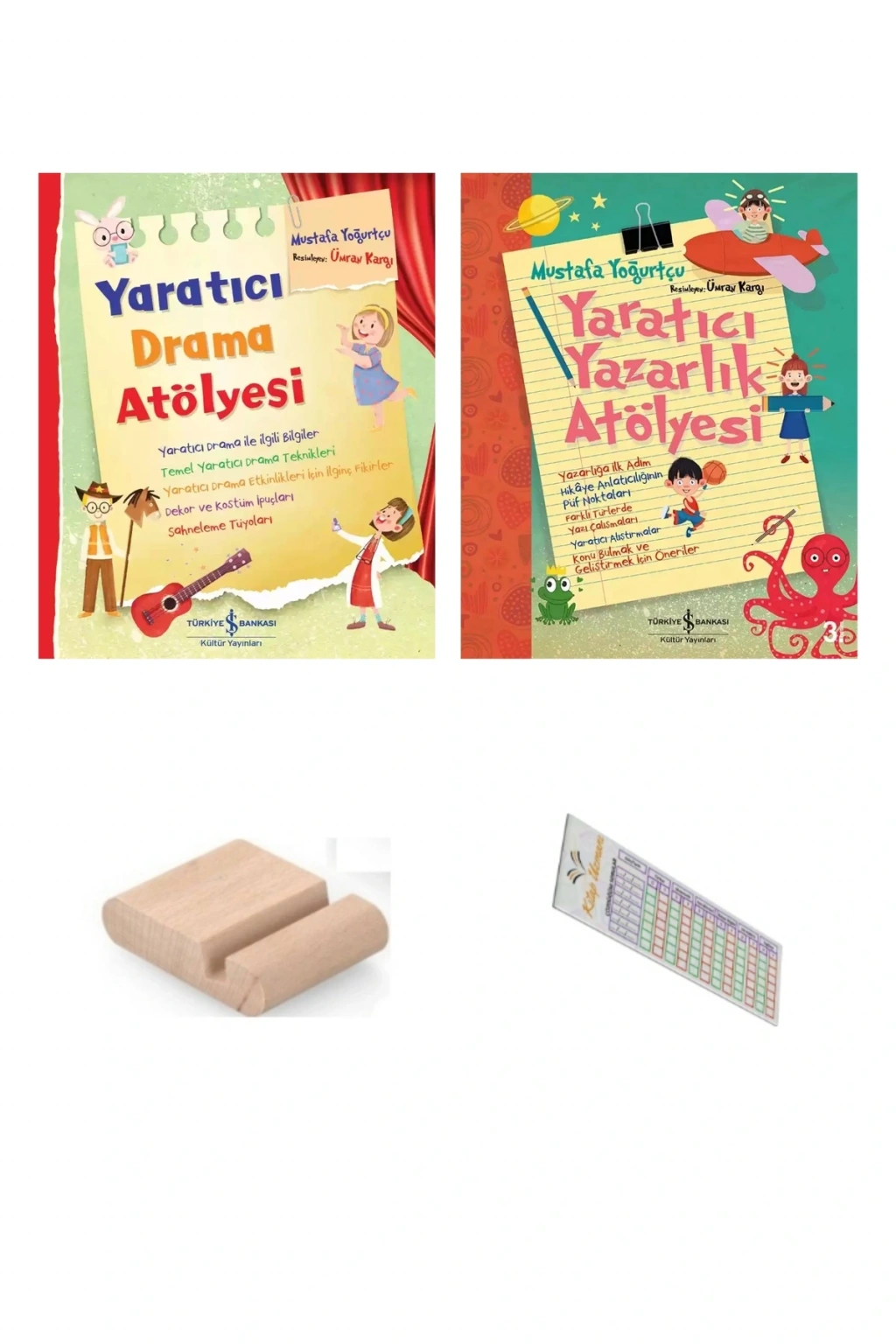 YARATICI DRAMA DÜNYASINA HOŞ GELDİN! Yaratıcı dramayla ilgileniyor ama nereden başlayacağını bilmiyorsan, bu kitaptaki bilgilerden yola çıkarak yeteneğini geliştirebilir, arkadaşlarınla birbirinden eğlenceli anlar yaşayabilirsin.; Yaratıcı Drama Atölyesi’nde gözlemleme, canlandırma, doğaçlama yapma gibi becerilerini pekiştirmek için pek çok alıştırma seni bekliyor.; Bu becerilerin drama alanında da gündelik yaşamında da çok faydasını göreceksin.; Yaratıcı Drama Atölyesi’yle yaratıcı dramaya keyifli bir giriş yapmanın tam sırası! Yaratıcı Yazarlık Atölyesi Selam genç yazar adayı! Kitapları çok sevilen bir yazar olmayı mı düşlüyorsun? Yoksa hedefin, başarılı bir gazeteci olmak mı? Yazı dilini geliştirmek, kendini yazı yoluyla iyi ifade edebilmek istiyor musun? O halde, seni atölyemize bekliyoruz! Bu kitapta, yazma becerilerini geliştirecek, yaratıcılığını harekete geçirecek pek çok alıştırma ve ipucu bulacaksın.; Yaratıcı Yazarlık Atölyesi’yle yazarlığa eğlenceli bir giriş yapmanın tam sırası! Oyunculuk, sahne ,dekor, senaryo, metin yazarlığı, hikaye anlatıcılığı Yazarlığa eğlenceli bir giriş yaptıran bu kitap çocukları metin üretme konusunda destekleyecek çalışmalar içeriyor.