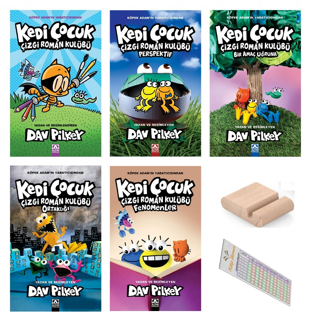 Köpek Adam ve Kaptan Düşükdon serilerinin uluslararası çok satan yazarı ve çizeri Dav Pilkey'den yine aşırı komik bir çizgi roman serisi! Naomi, Melvin, Pedro ve Poppy, Kedi Çocuk Çizgi Roman Kulübü'nün yirmi bir şamatacı, komik ve yetenekli yavru kurbağadan sadece birkaçıdır. Küçük Petey, Molly ve Flippy öğrencilerin kendilerini çizgi roman yoluyla kendilerini ifade etmelerini isterler. Fakat yavru kurbağalar hata yapıp geliştikçe sınıfta ve kâğıt üzerinde yaşanan çeşitli aksilikler onlar için bir maceraya dönü- şür ve kendilerini hiç beklenmedik şekilde garip ve komik olayların içinde bulurlar. Dav Pilkey’den garip fikirlerin ve komik olayların havada uçtuğu yeni bir seri daha Kedi Çocuk Çizgi Roman Kulubü’ne katılmaya hazır mısınız?