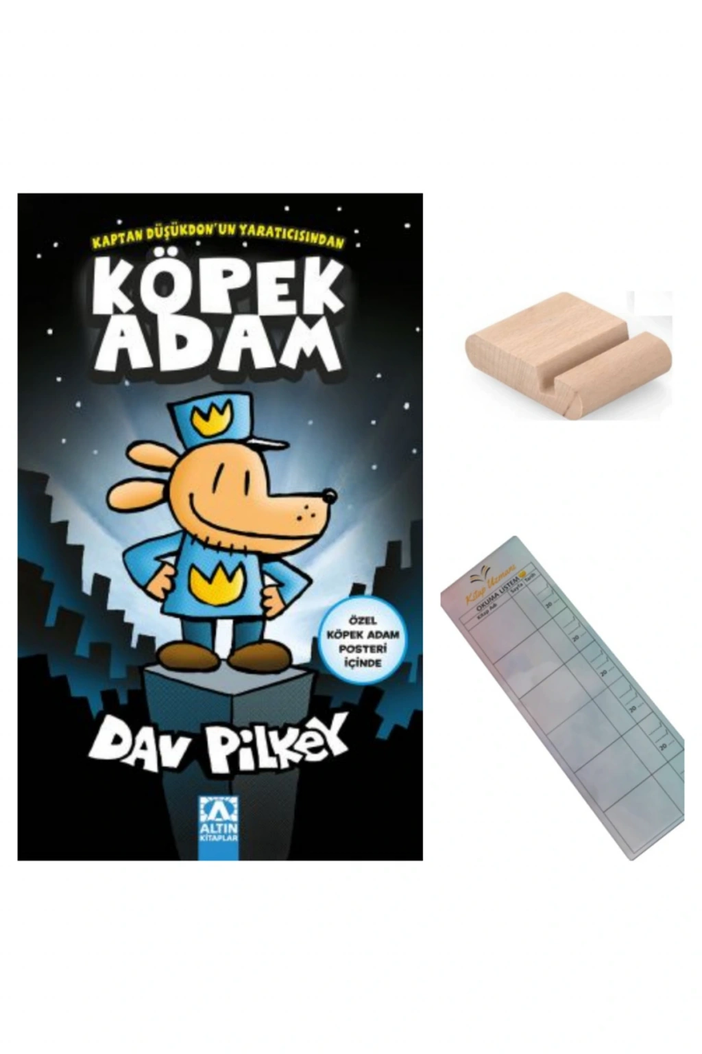 Kitaplar çizgi roman tarzında, bol görselli ve mizah dolu olduğu için okumayı yeni öğrenen ya da okumaya motive edilmesi gereken çocuklar için çok çekicidir.; Hikâyelerdeki dil basit, eğlenceli ve hızlı ilerleyen bir yapıya sahip.; Bu sayede çocuklar uzun metinlerden sıkılmadan okuma alışkanlığı kazanır.; Kahraman “Köpek Adam”, yarı köpek yarı insan bir polis olarak hem komik hem de cesur yönleriyle çocuklara iyi-kötü, adalet, dostluk ve empati kavramlarını eğlenceli biçimde öğretir.; Serinin yaratıcısı Dav Pilkey, aynı zamanda “Kaptan Düşükdon” serisinin de yazarı olduğu için benzer tarzda absürt mizah ve macera içeren olaylar küçük yaş grupları tarafından çok sevilir.; ? Kısaca:Yaş grubu: 7–12 yaşSınıf düzeyi: 2–6. sınıfTür: Çizgi roman / macera / mizahKazanım: Okuma isteği kazandırma, hayal gücünü geliştirme, empati ve adalet duygusunu güçlendirmeDav Pilkey – Köpek Adam Serisi: Macera, Mizah ve Dostluk Bir Arada!Dav Pilkey’nin efsaneleşen Köpek Adam serisi, hem çocukların hem de yetişkinlerin büyük bir keyifle okuduğu, kahkahalarla dolu bir çizgi roman serisidir! Kaptan Düşükdon’un (Captain Underpants) yaratıcısı Dav Pilkey’nin kaleminden çıkan bu eğlenceli seri, mizah, dostluk, kahramanlık ve empati kavramlarını sıra dışı bir şekilde anlatıyor.; Yarı köpek, yarı insan ama tamamen kahraman bir polis memuru olan Köpek Adam, hem suçla mücadele ediyor hem de dostluk ve adaletin önemini öğretiyor.; Her kitapta farklı bir maceraya atılan Köpek Adam, çocukların hayal gücünü geliştirirken aynı zamanda okumayı sevdiriyor.; Seri, özellikle 7 yaş ve üzeri çocuklar için idealdir.; Renkli çizimleri, akıcı dili ve bolca mizah içeren diyalogları sayesinde okuma alışkanlığı kazandırmak isteyen ebeveynlerin ilk tercihlerinden biri olmuştur.; Çocuklar bu kitaplarla yalnızca gülmüyor; aynı zamanda sorumluluk, iyi niyet, sadakat gibi değerleri de farkında olmadan öğreniyor.; Seri boyunca Dav Pilkey, mizahla eğitimi birleştiriyor ve çocukları düşünmeye, üretmeye ve empati kurmaya davet ediyor.; Okurlardan tam not alan Köpek Adam, dünya genelinde milyonlarca kopya satarak çocuk edebiyatının fenomeni haline geldi.; Eğer çocuğunuz için hem eğlenceli hem öğretici bir kitap arıyorsanız, Köpek Adam serisi tam size göre!Birçok ilkokul ve ortaokulda öğretmenler tarafından tavsiye edilen MEB kazanım ve değerler eğitimine uygun içerikli kitaplarımız sizlerle.