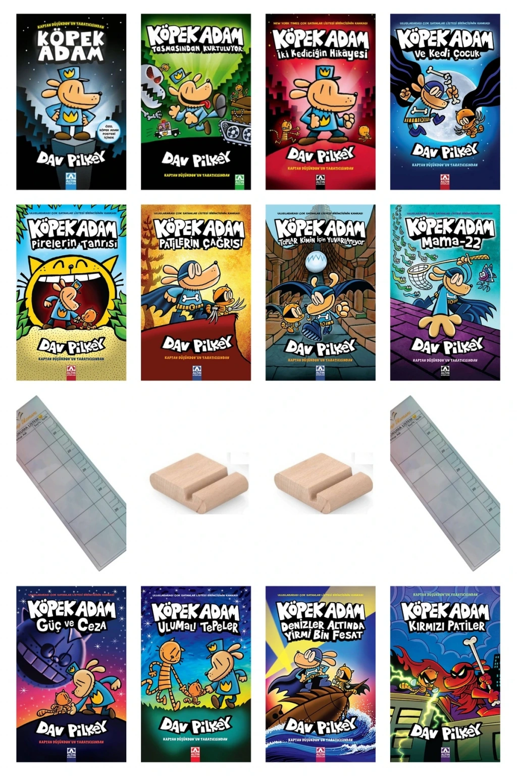 KÖPEK ADAM SERİSİ / 12 KİTAP TAM SETİ / 8-12 Yaş Hikaye / Çizgi Roman + Tablet Tutucu+ Takip Ayracı